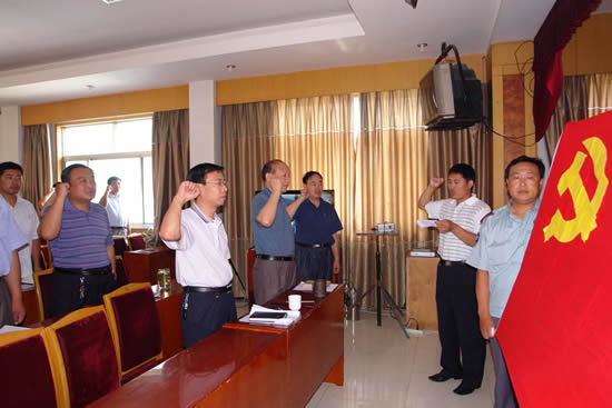7月1日上午,公司党总支召开全体党员大会,庆祝中国共产党建党88周年。首先,全体党员面对鲜红的党旗,重温了入党誓词。党总支副书记米永友主持了会议,总支委员杨中河宣读了《关于开展一名党员一面旗主题活动的意见》,总支书记荀金庆结合公司实际作了重要讲话,重温了两个务必,荀书记指出,今年企业改制步入了一个新的发展阶段,是企业发展的分界线。我们在看到过去成绩的同时,要保持清醒的头脑和谦虚谨慎的作风,牢记两个务必,对我们具有重要的现实意义。最后荀书记提出四点要求:一是树立正确的人生观、价值观,牢记全心全意为人民服务的宗旨;二是加强党性观念,搞好党性修养,时刻发挥党员模范作用;三是提供组织观念,加强组织性,接受组织领导的监督;四是带头搞好学习,提高自身素质。