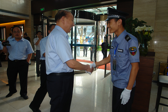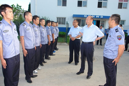 会后,与会人员先后到青岛分公司驻青岛卷烟厂、青岛卷烟厂南渠烟库、远洋地产、中铁置业有限公司等执勤点看望慰问了执勤保安员。董事长、总裁荀金庆每到一处,都与队员亲切握手,详细了解家庭情况,嘱咐负责人一定要做好队员的生活保障,让大家安心工作,并鼓励大家要继续发扬华威保安的优良传统,扎实工作,树立起华威保安的品牌形象。