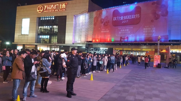 双11期间天猫科技公司举办的“捉黄金猫,领现金红包”活动在建邺万达广场如期举办,活动共吸引了5000余人参加。此次活动全程由江苏华威保安公司派出的特保保驾护航。