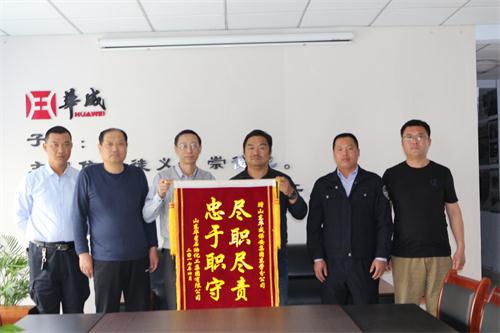 4月19日,东营分公司收到客户“山东华星石油化工集团有限公司”锦旗一面,锦旗上“忠于职守,尽职尽责”8个大字熠熠生辉,这8个字不仅是对华威保安的肯定,更是对驻华星门...