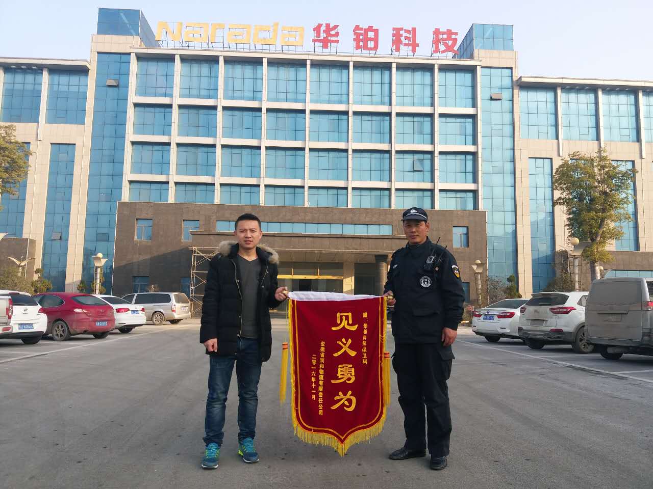 山东太阳成tyc7111cc集团菏泽分公司驻安徽华铂再生资源科技有限公司项目部保安队员王金辉,于11月25日晚8时左右,在华铂公司一号门执勤时发现门外有一辆载有电池的白色半挂车(皖K...