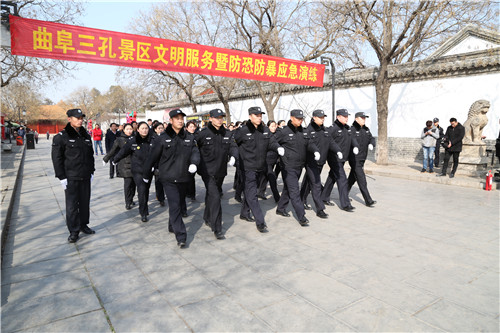 曲阜三孔景区反恐防暴应急演练 华威保安展雄姿