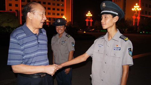向保安队员表达美好的新春祝福