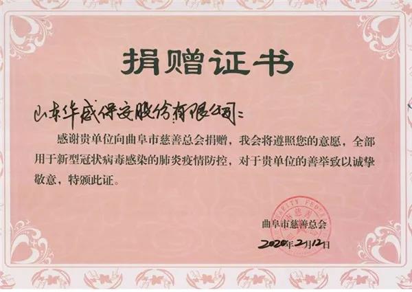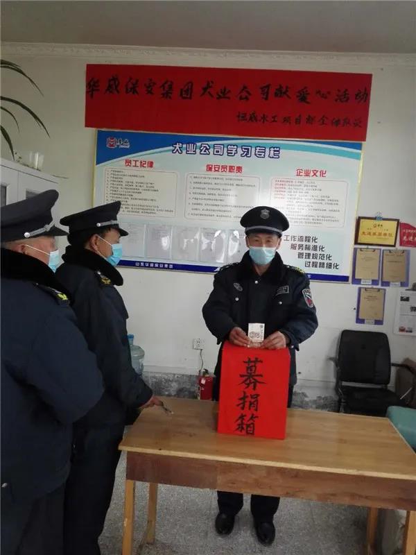 践行社会责任、热心公益事业是华威保安的传统,组织员工开展抗击疫情捐款活动,不仅是弘扬这一传统美德的善举,也是每位员工应尽的社会责任。虽然个人的力量是单薄的,但涓涓细流汇聚成海,山东太阳成tyc7111cc集团用实际行动在春寒料峭时节为抗疫一线送去一股暖流。